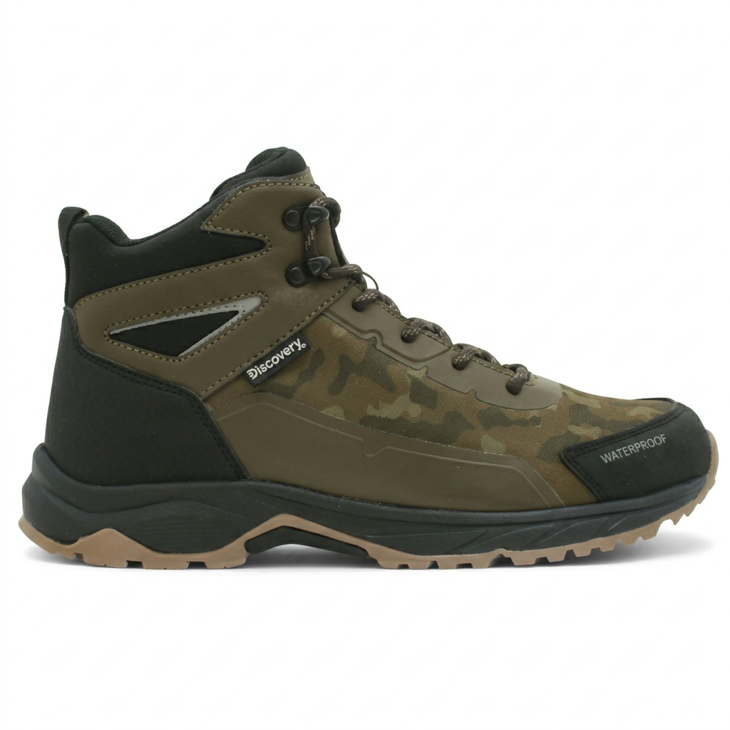 La bota Discovery MONTGOMERY-145KC en color verde militar combina un diseño técnico de camuflaje con la máxima resistencia, ofreciendo tecnología impermeable para mantener tus pies secos en cualquier entorno. Con una suela de alta tracción y una estructura reforzada, este modelo es la opción ideal para quienes buscan durabilidad, protección contra la humedad y un estilo aventurero único en sus recorridos al aire libre.